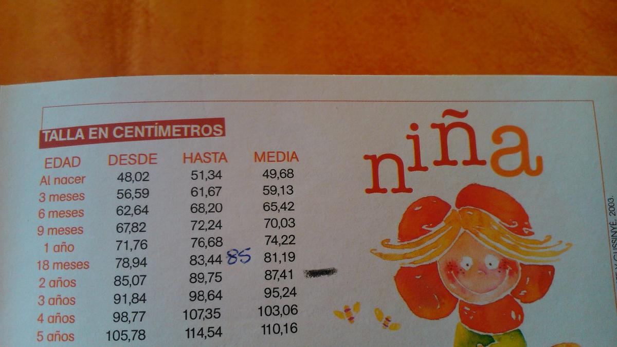 Os dejo las tablas de la talla de niños y de niñas en centímetros. En la columna de la izquierda podéis ver la edad del pequeño, y después podéis ver tres columnas: