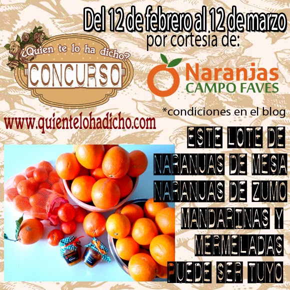 Hoy da comienzo un nuevo sorteo en "Quien te lo ha dicho" de la mano de nuestros amigos de Naranjas Campo Faves que nos traen lote de naranjas, mandarinas y mermeladas deliciosas.