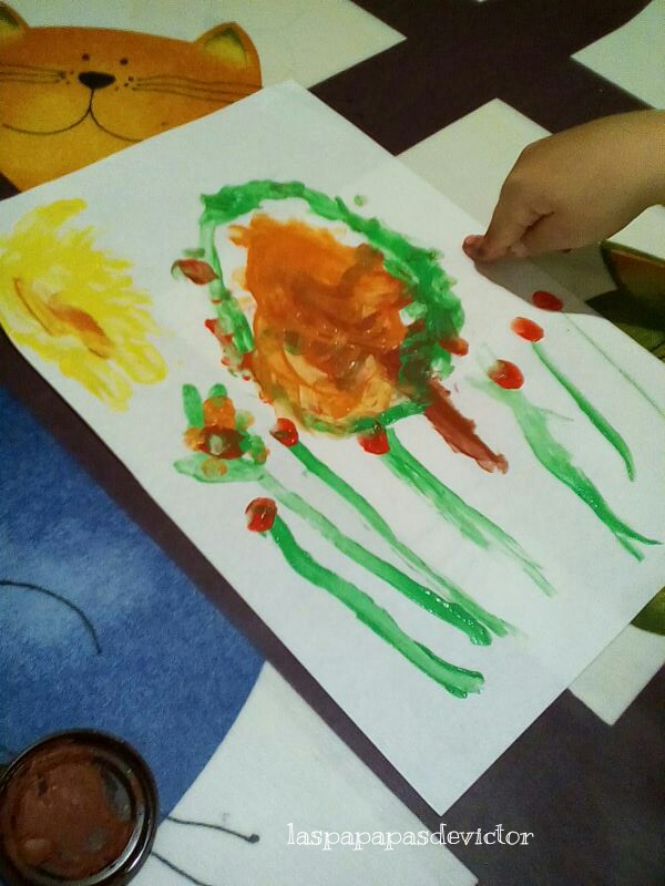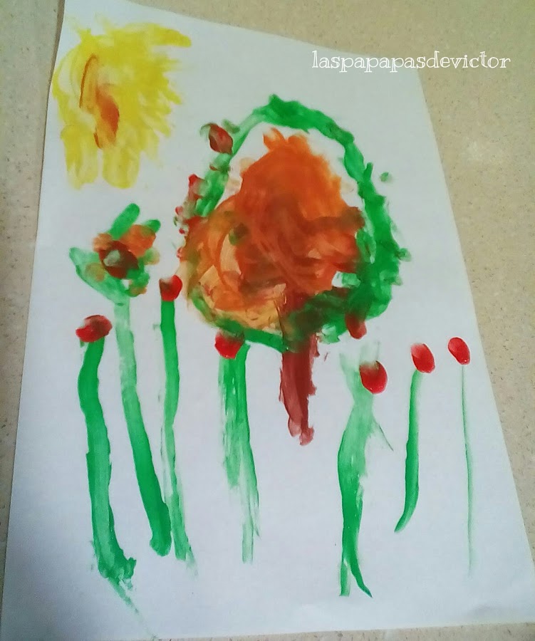 A mi peque le di los materiales y le dije que, que me podría hacer de dibujo y que es lo que más le gustaba de la primavera