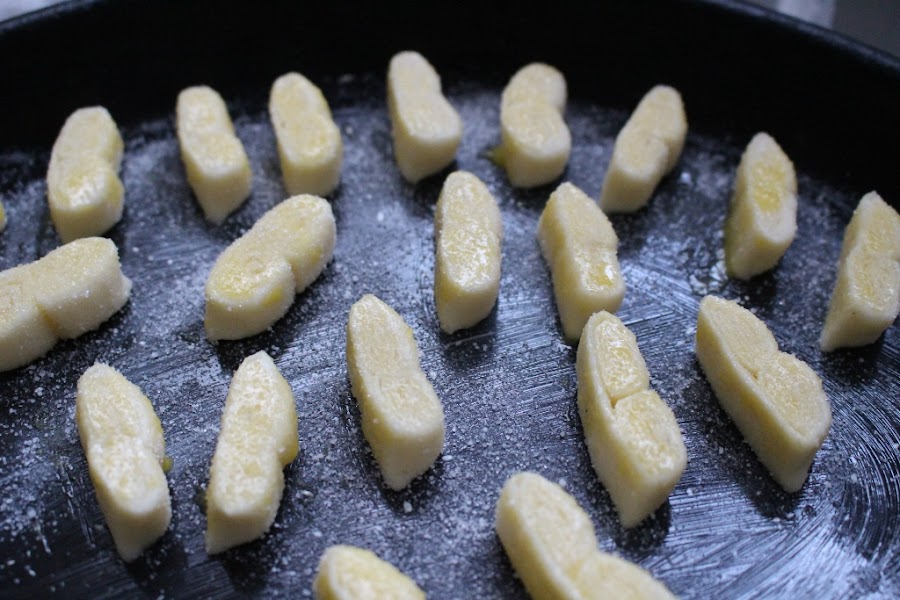 Pincelar la masa con manteca derretida o ghee y espolvorear con azúcar.