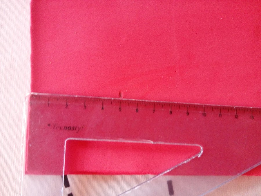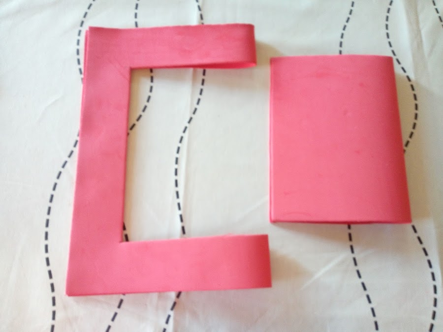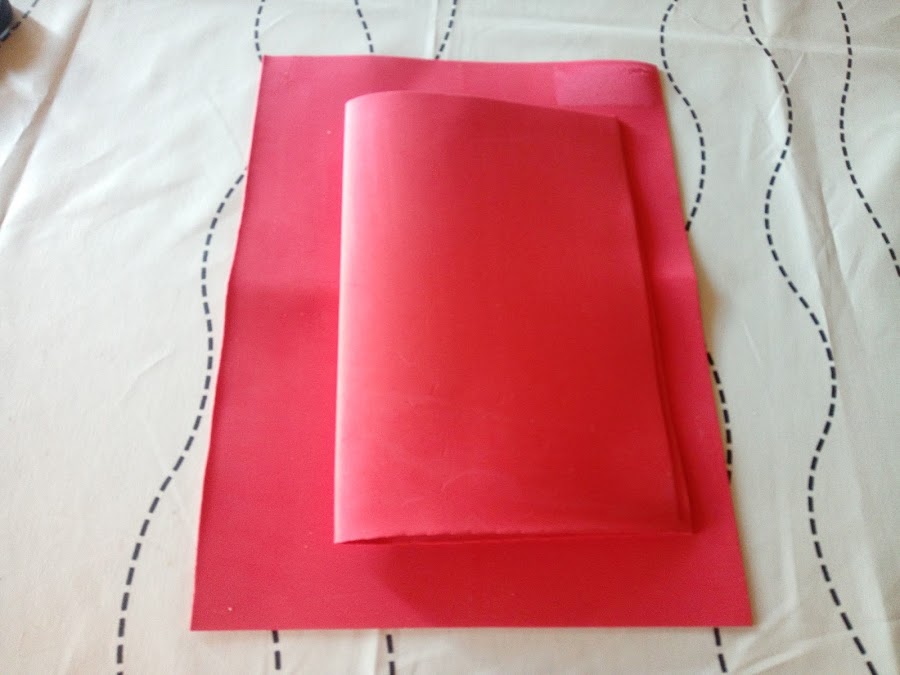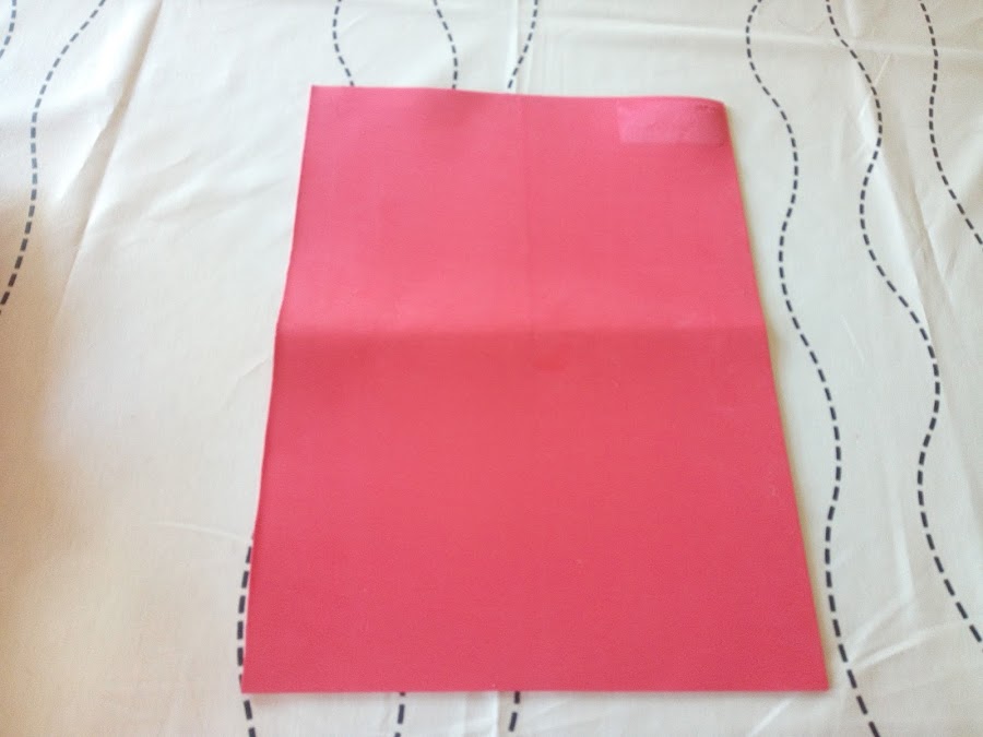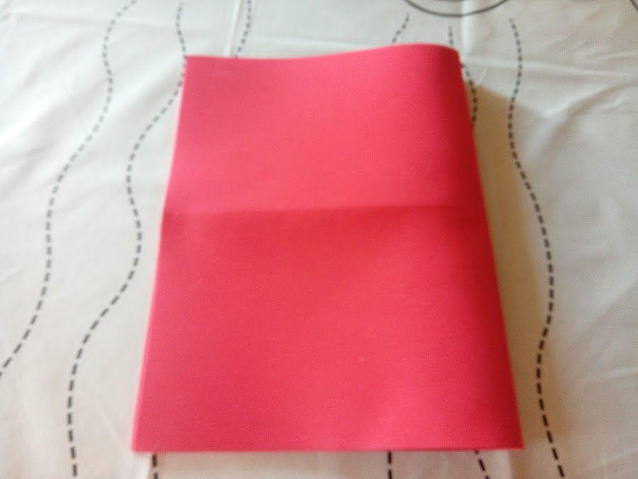 Doblas la lamina grande de goma eva por la mitad y la cortas en dos mitades.