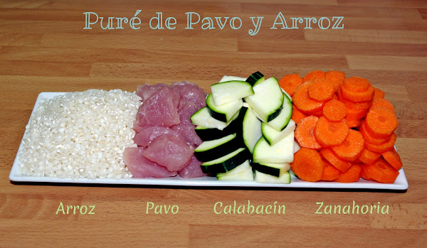 Hoy preparamos un Puré de Pavo y Arroz, con Zanahorias y Calabacín que encantará a los más pequeños de la casa. La receta es muy sencilla de preparar y os quedará un Potito Casero muy bueno. La receta es apta de 6 a 8 meses pero lo mejor es seguir siempre las indicaciones de vuestro pediatra.