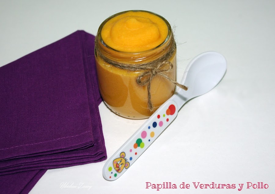 Hoy preparamos un Puré de Verduras y Pollo que encantará a los más pequeños de la casa. La receta es muy sencilla de preparar, os quedará un Potito Casero muy bueno. La receta es apta de 6 a 8 meses pero lo mejor es seguir siempre las indicaciones de vuestro pediatra.
