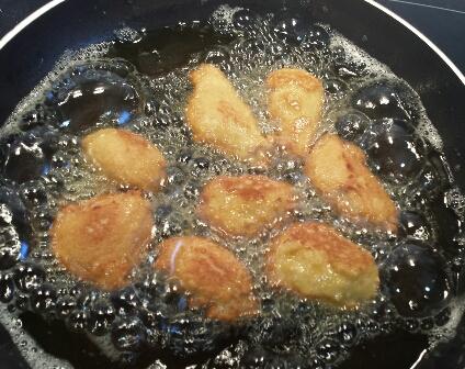 3. Calentar aceite en una sartén. Coger la mezcla con una cuchara y directamente ir echando en la sartén hasta que estén dorados a nuestro gusto.