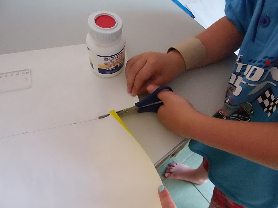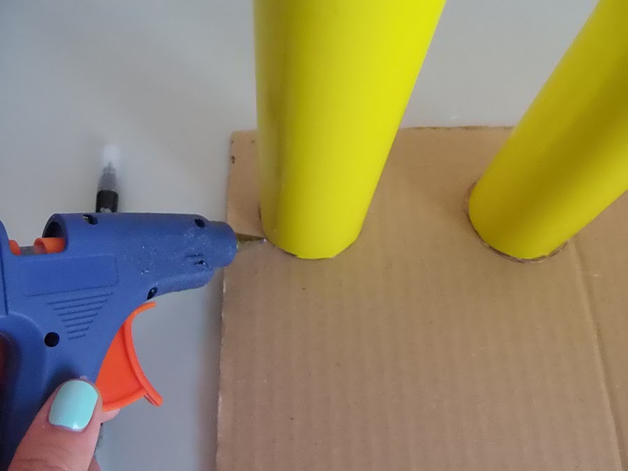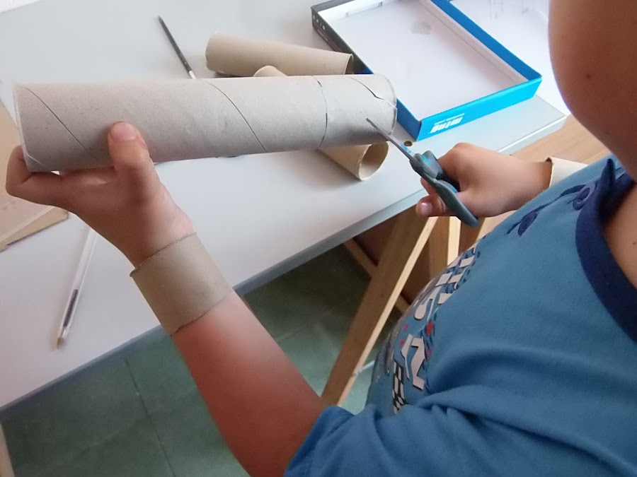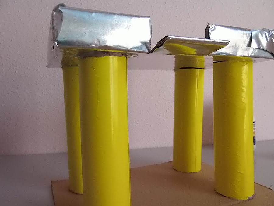 2.Con papel hemos forrado los tubos para dar el aspecto de los pilares de un parking.