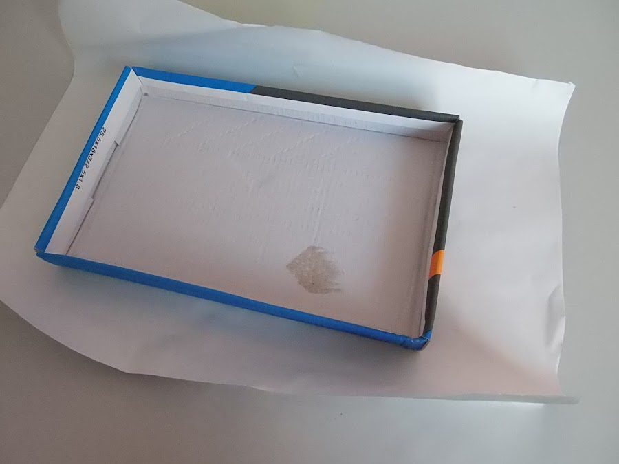 3.Ahora vamos a forrar la tapa de una caja de zapatos que actuará como segundo piso,acordaos de dejarle entrada.