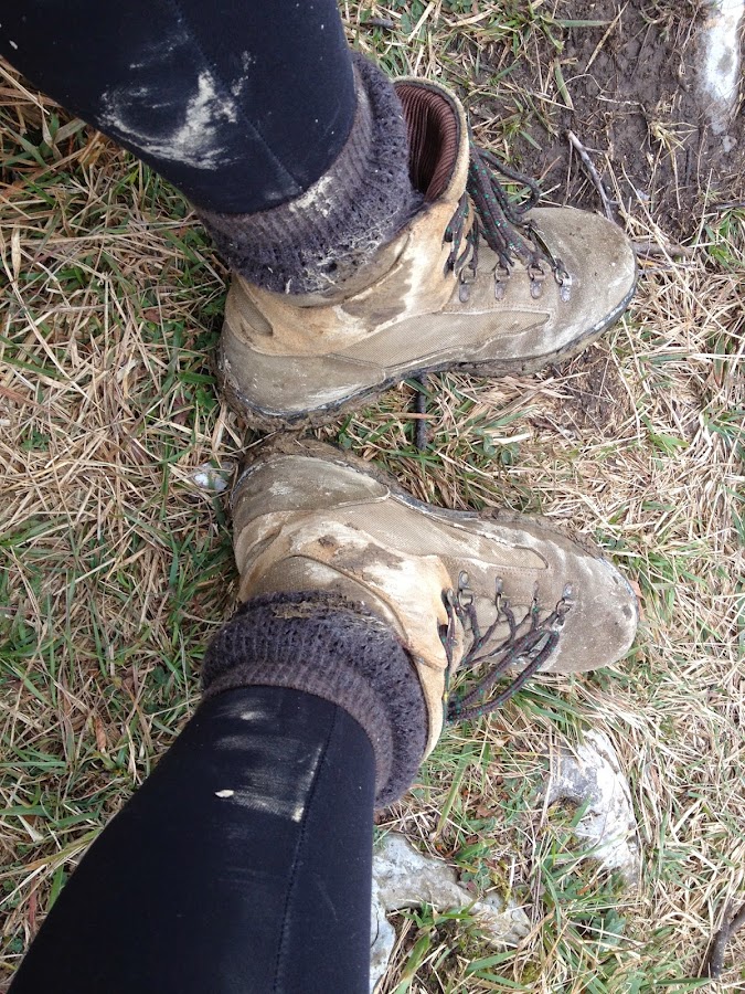 La caminata fue dura, mirad sino como acabaron mis botas y pantalones de barro!