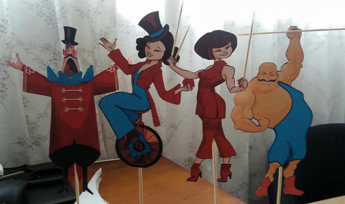 Recopilé a varios personajes de circo unificados en sus características y colores y coloqué una gran carpa de circo coronando toda la composición de la mesa que por supuesto también lleva su estudio y complejidad.