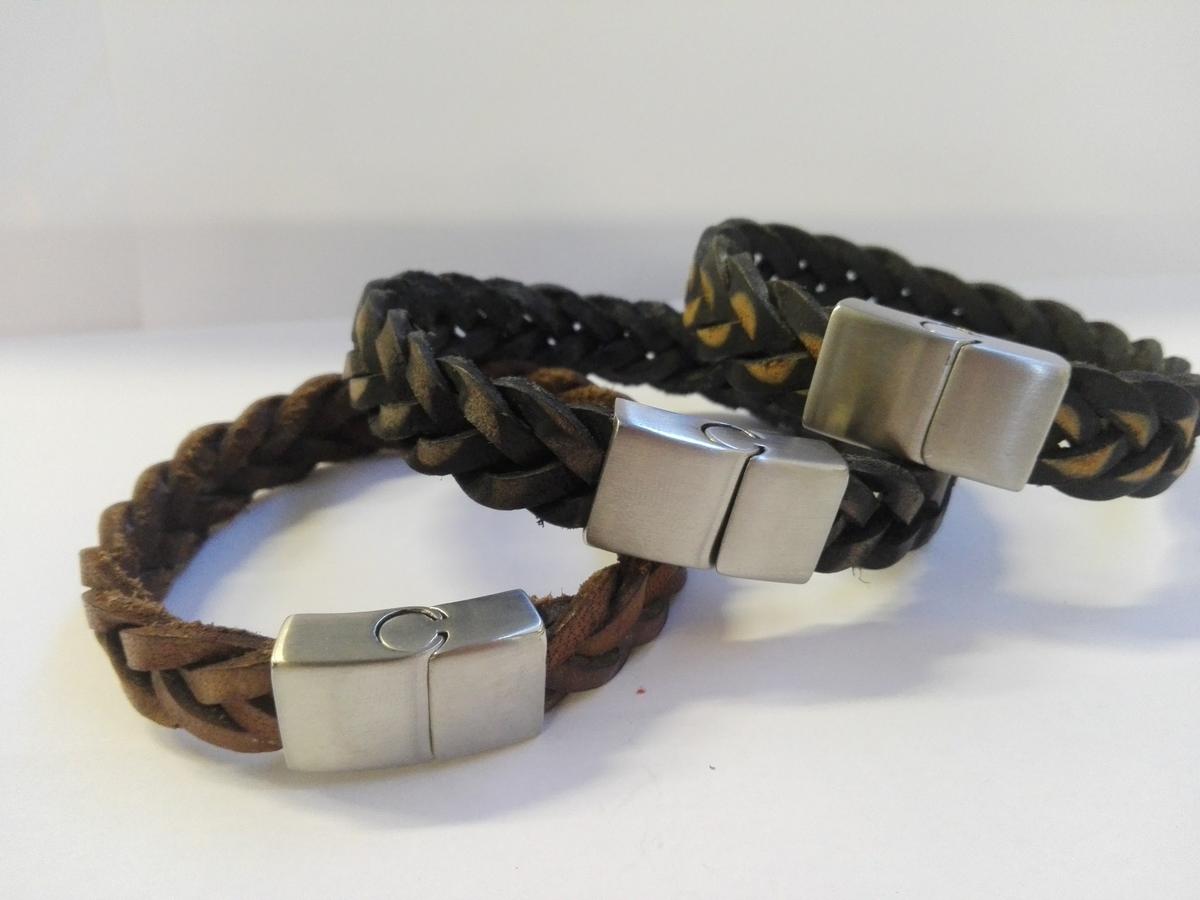 • Si está trabajando con cuero redondo de 5 mm para crear una pulsera de una o varias envolturas, entonces el cierre magnético de medio círculo es la opción ideal. Cree su propio patrón único trenzando coloridos cordones de 2 mm que se asegurarán perfectamente con este cierre.