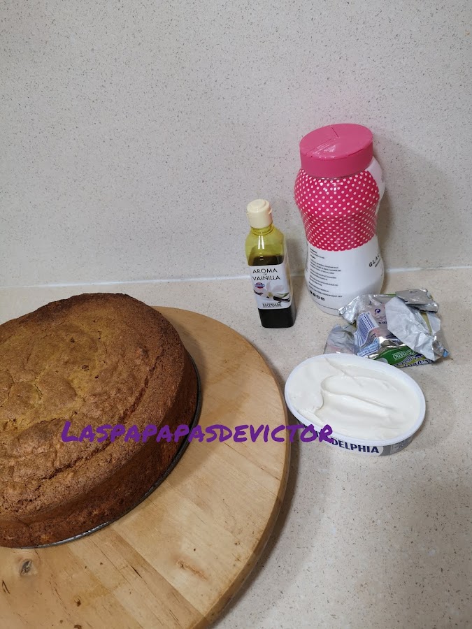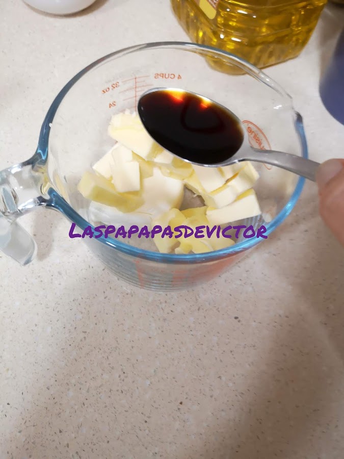 Mezclar la cucharadita de Vainilla, 1/3 taza de mantequilla cortada a cuadros 1/2 tarro de queso crema y 1/2 taza de azúcar glass