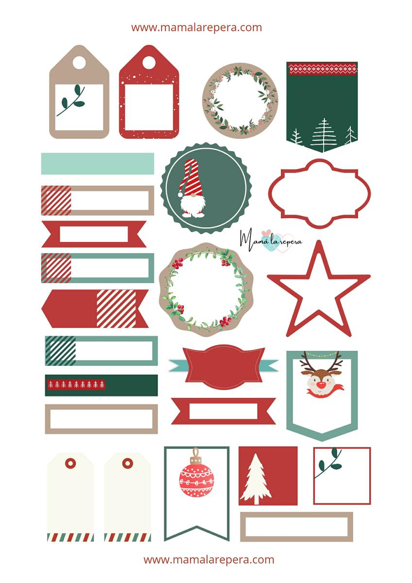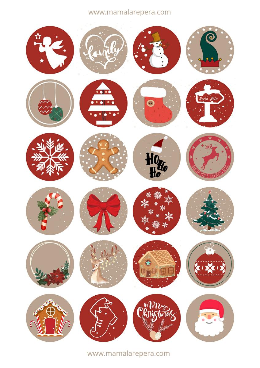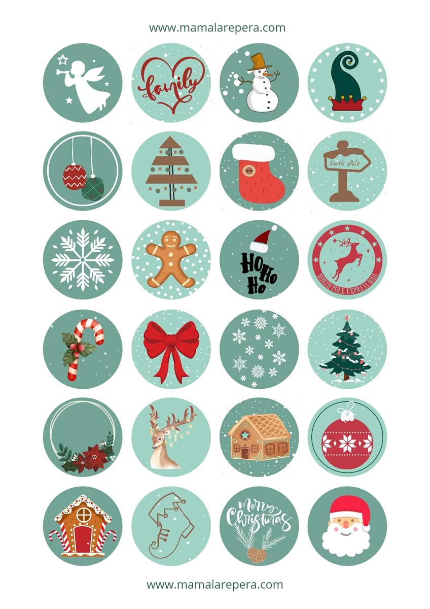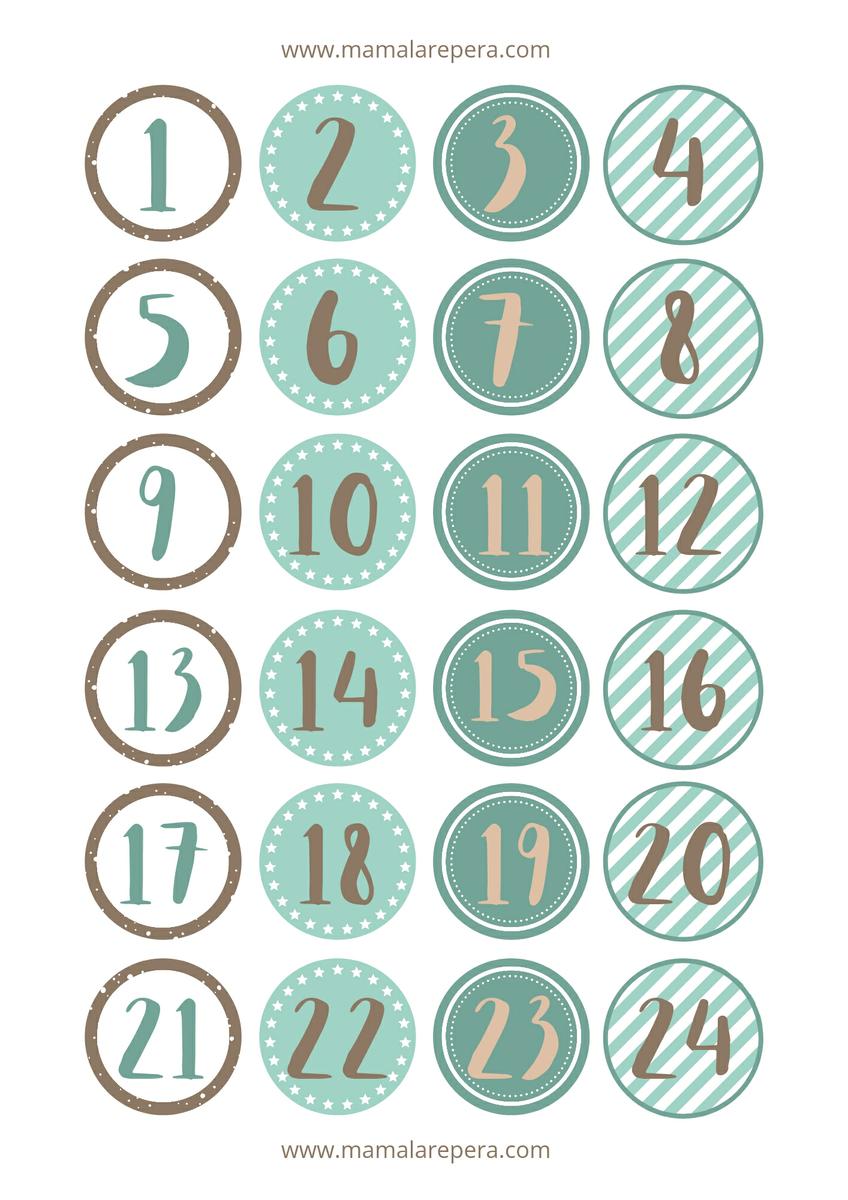 Pero antes os quería dejar por aquí algunas pegatinas y etiquetas con diseños navideños para que podáis descargar e imprimir en casa. Hay varios modelos que podéis utilizar en vuestro calendario. Con dibujos, numéricos y etiquetas para personalizar en diferentes colores que también podéis combinar entre ambos.