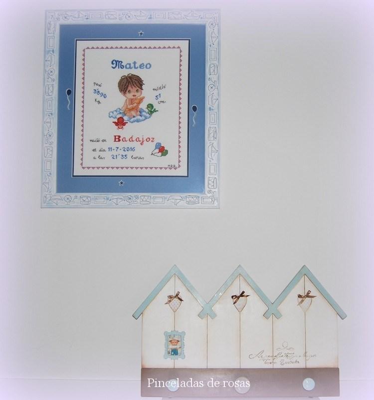 Un lindo natalicio que con cariño le hizo mi gran amiga Maxi , bordado a punto de cruz con todos los datos del nacimiento de Mateo.