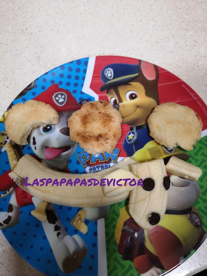De una mitad partir en tres trozos, uno más grande que será el hocico, los otros dos trozos que serán la orejas del perrito.