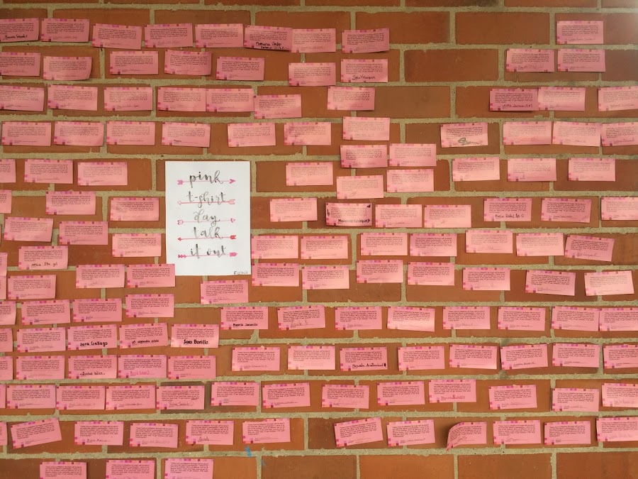 Ya con una perspectiva un poco diferente, bastante intrigada por lo que este día podría llegar a ser, escogí una camiseta rosada para asistir al colegio. ¡Qué hermoso ver a mil niñas con sus camisetas rosadas.