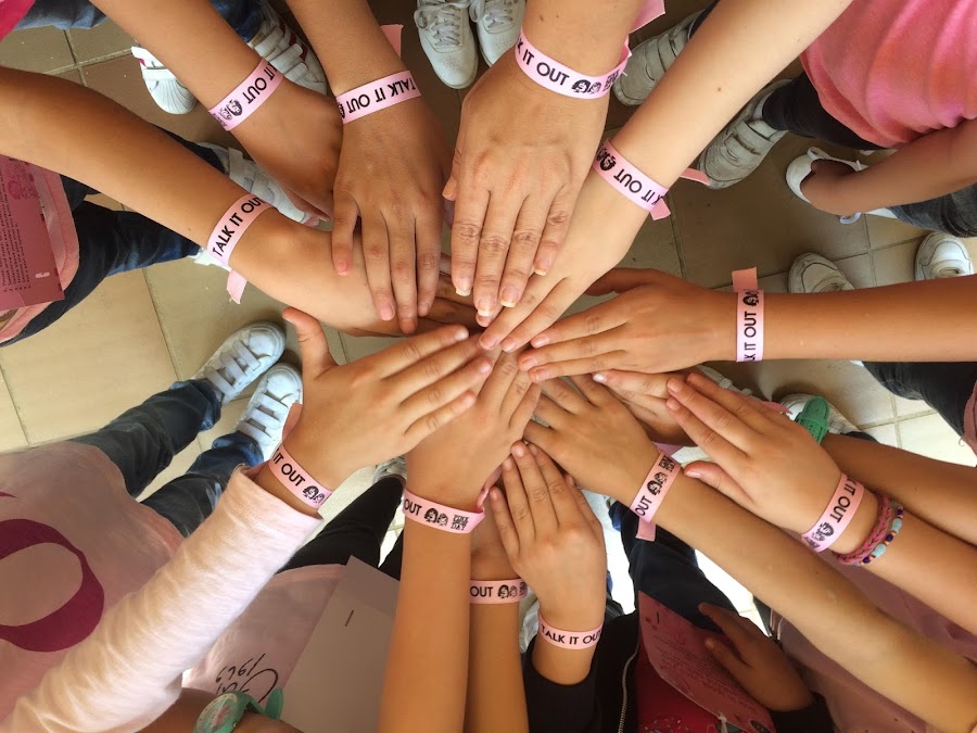 Después de reflexionar sobre este personaje, todas realizamos una promesa para nunca más ser espectadores mientas una personas sufre, sino siempre hablarlo: Talk it out! Para esto nos pusimos unas manillas con estas palabras como un recordatorio de nuestro compromiso y cada una de las niñas firmó un compromiso que decía lo siguiente: