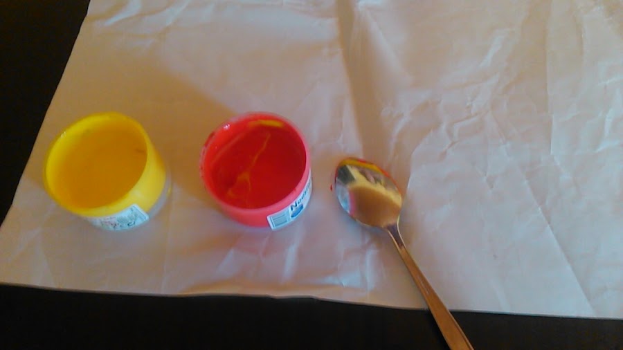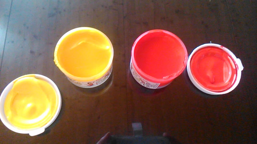 Con niños pequeños recomiendo empezar por los colores básicos e ir sacando cada día uno diferente para que se los vayan aprendiendo. En este caso concreto usamos rojo y amarillo.