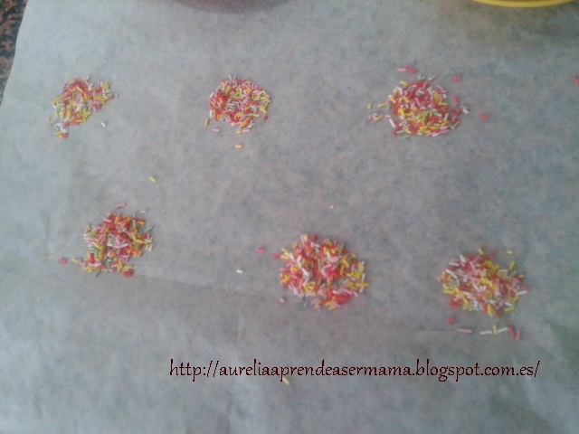 Me vino muy bien utilizar papel vegetal donde dejaba los fideos de colores, y una cucharada de chocolate deshecho previamente en el micro.