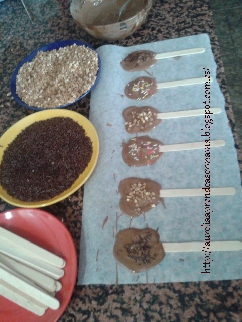 Lo ideal hubieran sido palitos de brochetas que son mas largos pero como entenderéis no me iba a arriesgar a que se saquen un ojo.