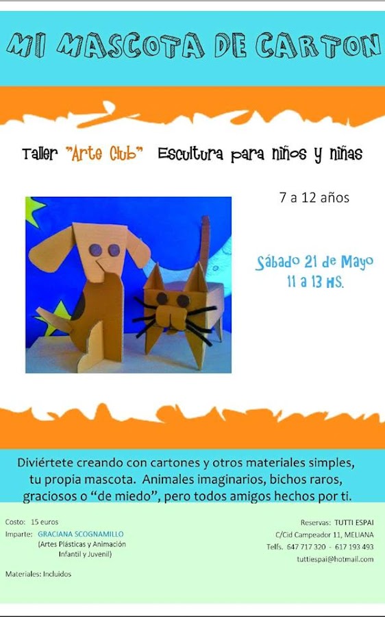 Taller genial para los niños, reciclando cartones y otros materiales, crearan una mascota. Animales, bichos raros, como ellos quieran.