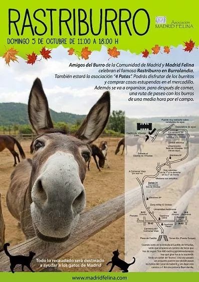 El pasado 5 de octubre, día de mi cumple, al fin pudimos visitar Burrolandia. Además coincidía con el Rastriburro en el que todo lo recaudado iba destinado a la Asociación Madrid felina y se hacía una excursión.