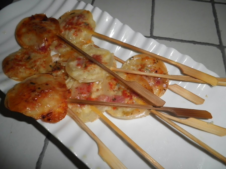 9.- Con la punta de un cuchillo decoramos los tomates con puntitos de mahonesa. También podemos hacerlo con una manga pastelera.