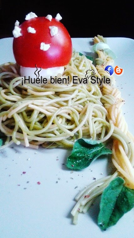 3.- Una vez estén cocidos los espaguetis en su punto. Enrollamos una porción de pasta en un tenedor de trinchar, la servimos en el plato dándole forma de nido.