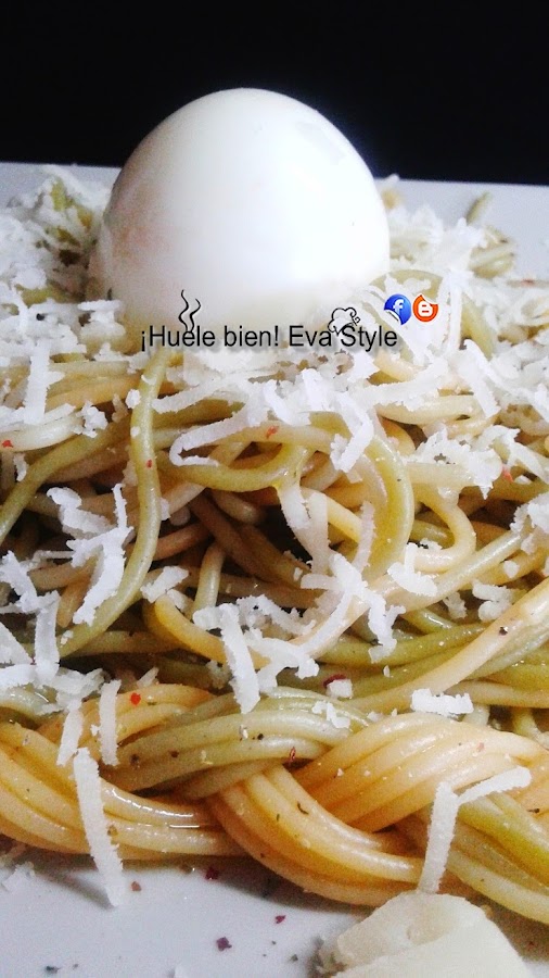 4.- Cocemos un huevo, una vez este duro le quitamos el cascaron. Para que se más fácil lo pasamos por agua fría, lo colocamos en el centro del nido. Rallamos el queso alrededor de el huevo, salpimentamos y decoramos con unas hojas de orégano fresco.