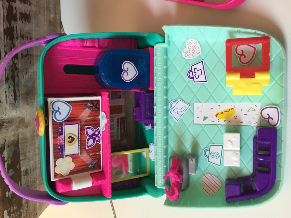 Las Polly Pocket viven en pequeñas casitas que por fuera pueden ser un bolso, un flotador de flamenco, un donut gigante o una caja de música, mientras que por dentro podemos encontrar una casita con piscina, un castillo con su jardín y su fuente, o un precioso teatro dónde poder hacer una función