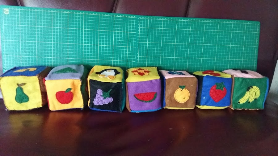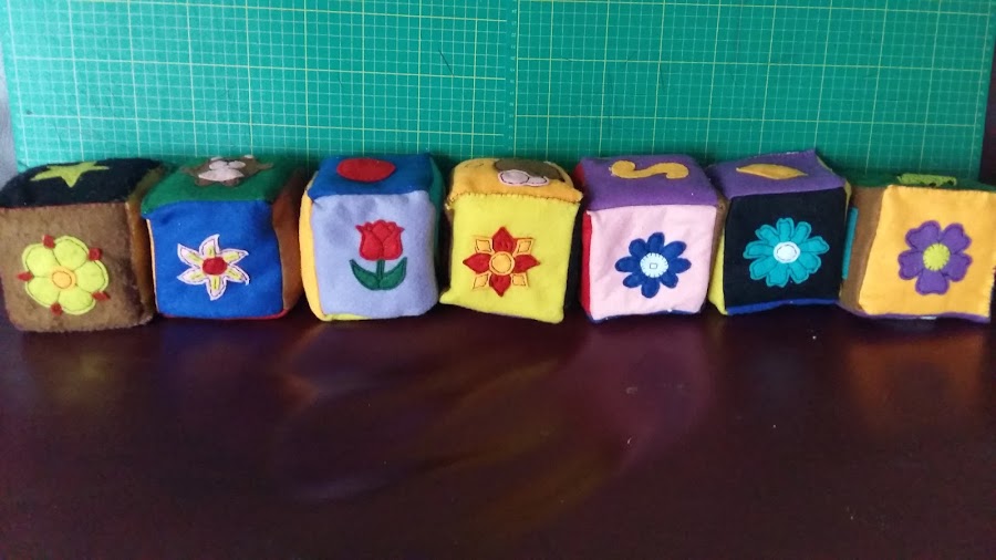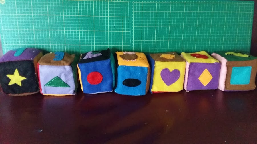 Bueno, si se animan a hacer estos cubitos, les voy a ser sincera, tienen que tener mucha paciencia. Si notan las entradas anteriores, verán que ha pasado mucho tiempo desde que empecé este proyecto; y es más, lo logré terminar gracias a la ayuda de mi hermano, quien se compró una máquina de coser y en unos minutos unió los lados de todos los cubos. No miento que las puntadas hechas a mano quedan más bonitas, pero tuve que auxiliarme de la máquina de coser para poder acabarlos. Pero eso sí, los dibujitos que lleva cada cubo sí que tienen que hacerlo a mano. No recomiendo que usen pega porque los niños son bien traviesos y pueden despegarlos.