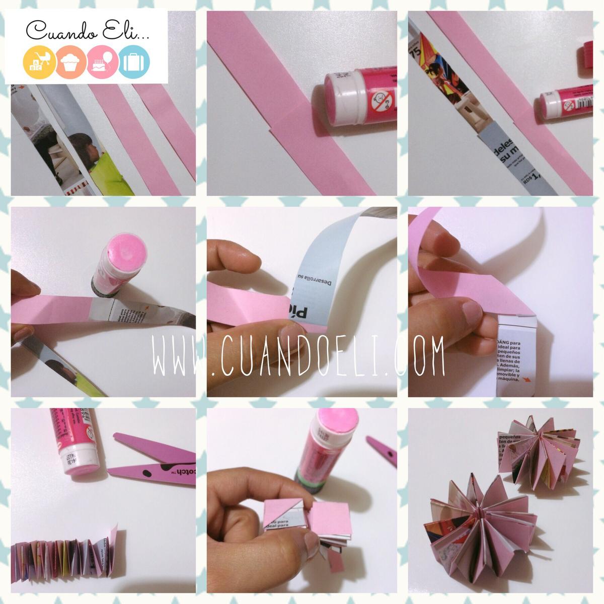 2 tiras de papel largas de dos colores distintos (1×12 cm aproximadamente)* , he utilizado papel rosado y papel de revista