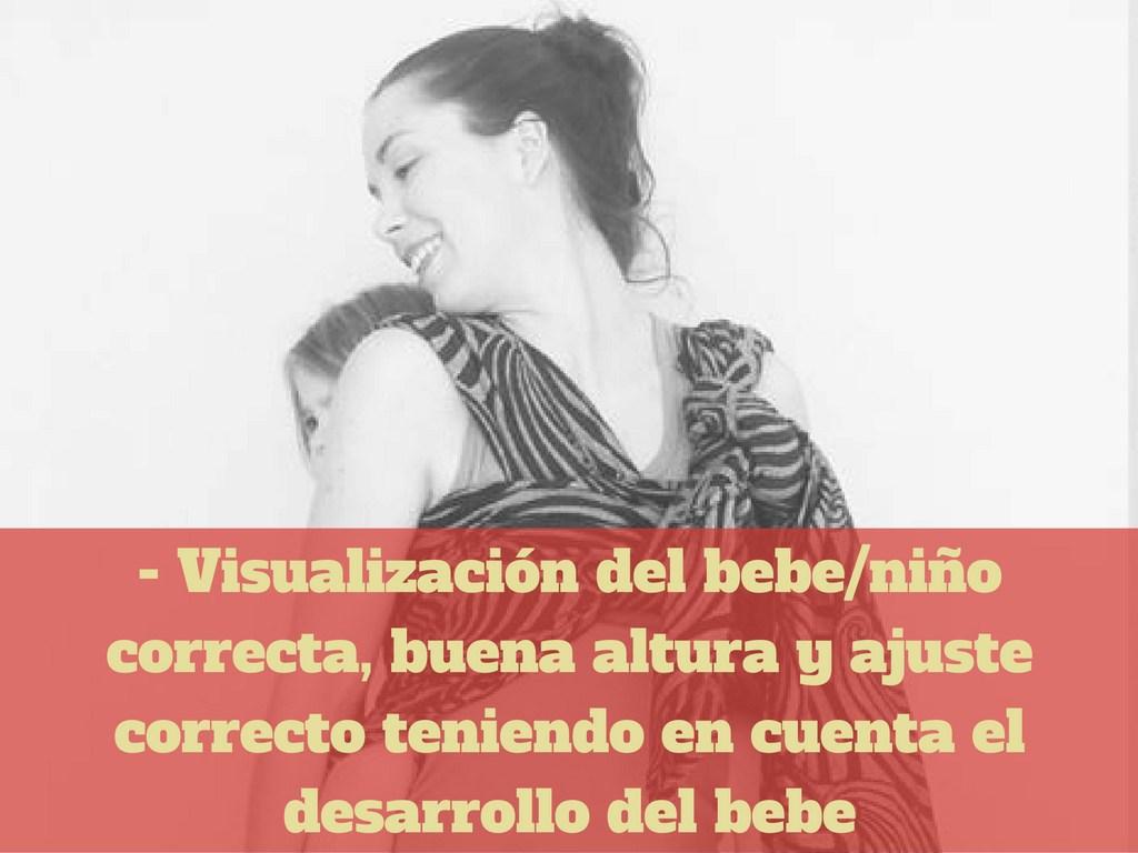 Debemos tener buena visibilidad del bebe/niño haciendo un nudo o ajustando el portabebé a una altura adecuada e idónea. Para visualizar correctamente al bebe podemos llevar un espejo pequeño, ayudándonos del móvil o mirando incluso en los cristales y espejos de los espacios por donde porteemos.