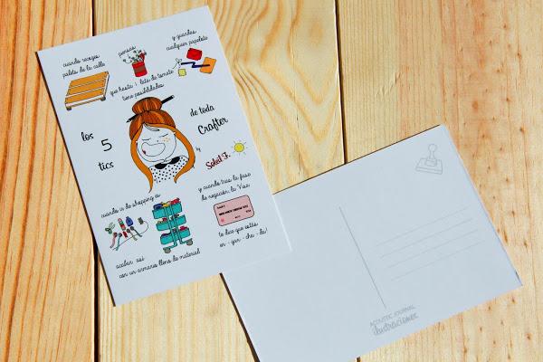 Además, en lugar del cuadrado típico del sello de la parte trasera... he dibujado un stamp, para que sean postales craft 100%, como se merecen!