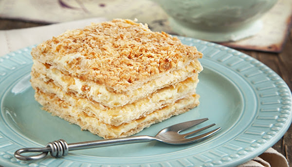En un molde, agregar una capa de crema y una capa de galletas. Repetir proceso hasta terminar los ingredientes.