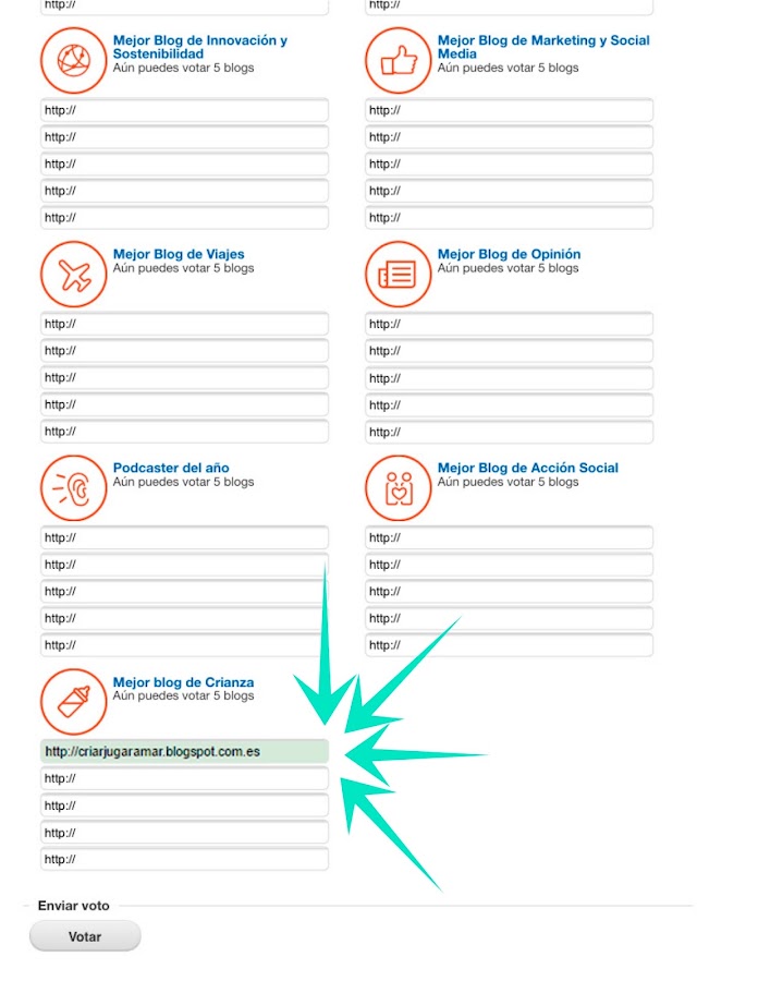 Para empezar debéis entrar en el siguiente link: http://bitacoras.com/premios16/votar