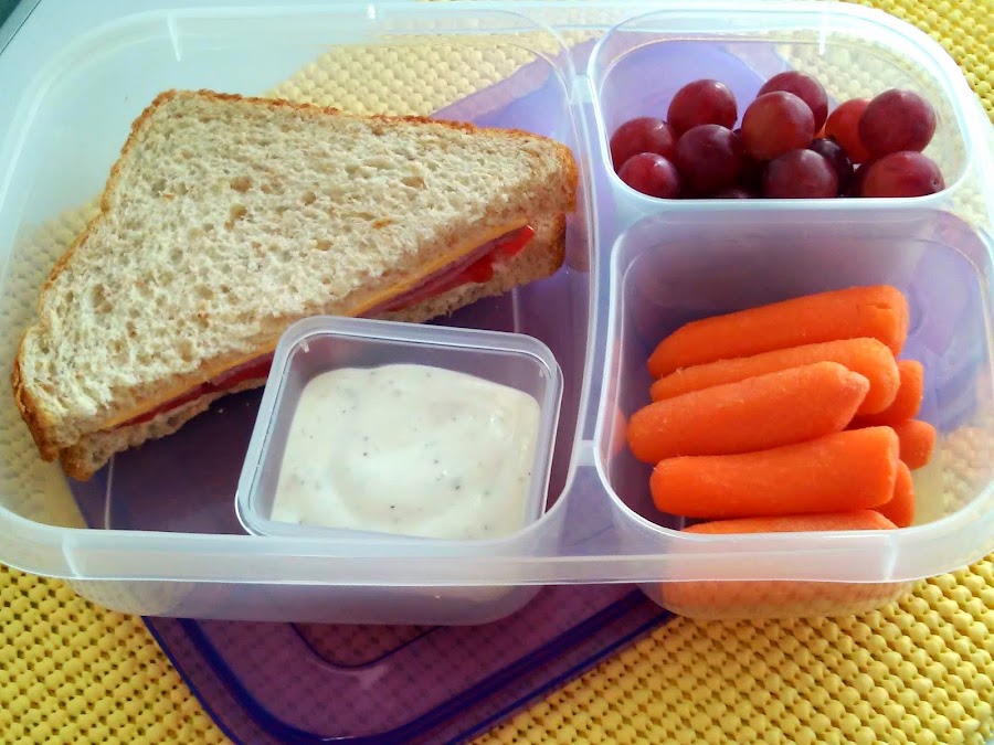 Lo que mas me encanta de los menus semanales que me envian es que es comida real la estoy preparando yo y se que es comida que le encantara a mi hija ya que puedo incorporar diferentes alimentos cada dia para que no se aburra de los mismos, y no me tengo que preocupar si comio o no sus frutas y verduras. Aparte los recipietes son de buena calidad y libres de BPA para el lonche de mi hija le prepare un sandwich de jamon, junto unas uvas y zanahorias que le encantan, utilize un recipiente pequeño "mini-dipper" que es ideal para agregar aderezos.