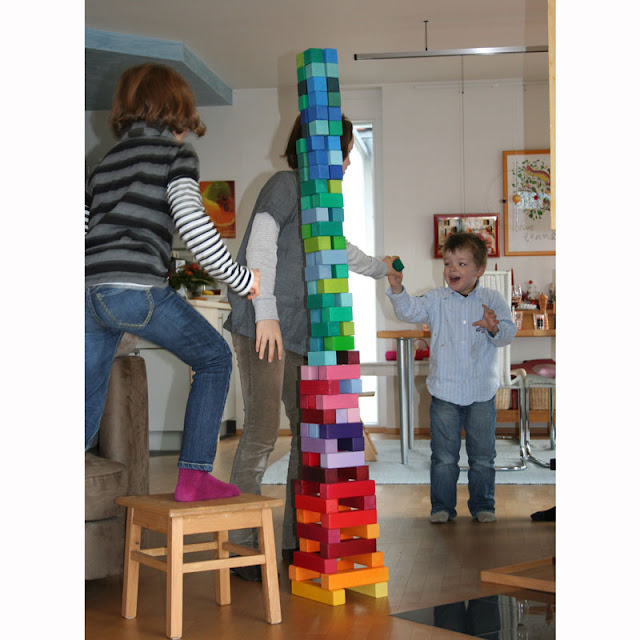 Es uno de sus mejores materiales de construcción que consiste en un conjunto de 100 piezas de madera de una calidad y belleza excepcionales. Es un material que dará juego a niños y niñas desde los 2 hasta los 10 años. Es estable, las piezas son robustas y todas tienen una misma medida de base (4cm) y diversas alturas para construir, formar series, combinaciones y crear estructuras de todo tipo. Es uno de sus mejores juguetes de madera y un material bellísimo para alimentar los sentidos.