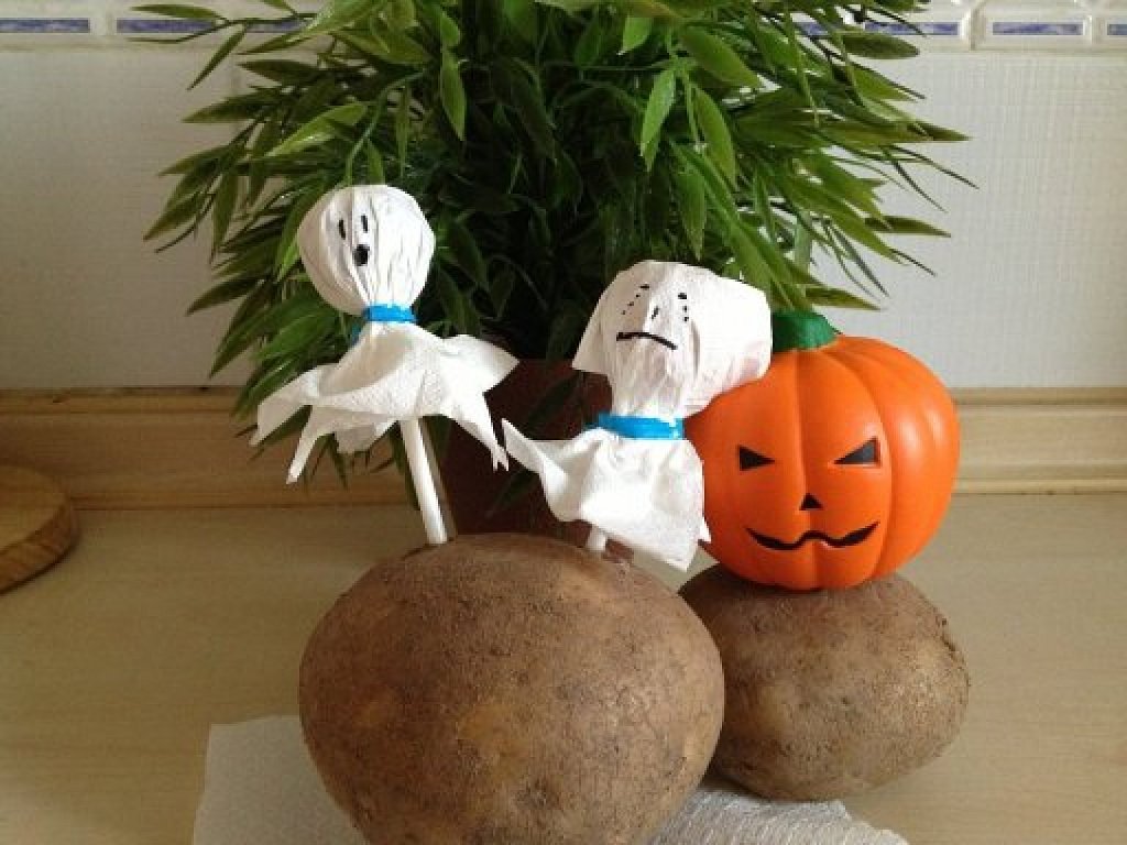 Si lo que queremos es sorprender a nuestros invitados, no podemos olvidarnos de prepararles un buen vaso de zumo escalofriante, haciendo que salga niebla de el con hielo seco. Y para acompañar al zumo con niebla tenemos tentempiés escalofriantes como por ejemplo: magdalenas decoradas con arañas de chocolate, galletas con forma de fantasmas y por qué no, cake pops de calabazas.