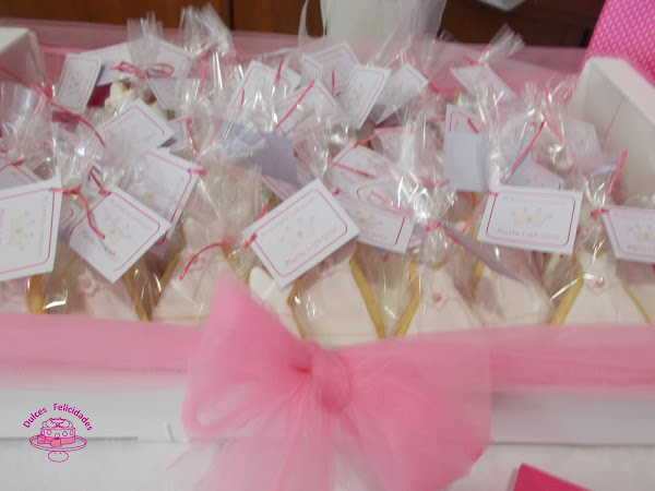 El recuerdo que se llevaron las invitadas al evento fueron unas galletas en forma de vestido de comunión, que llevaban una etiqueta con el nombre de Marta y la fecha.
