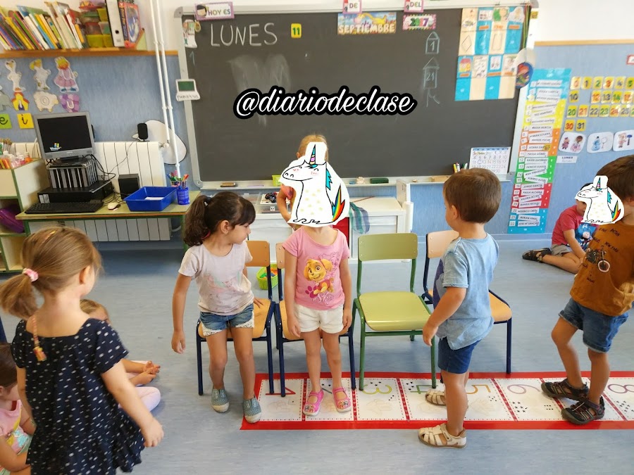 Hemos trabajado y jugado en asamblea a juegos de abn: búsqueda de formas planas y emparejamiento, conteo, enumeración... Hoy hemos jugado a que salían dos niños uno no podía hablar solo con sus dedos podía decir el número de piezas que quería y el compañero de las tenía que dar. También hemos jugado con las sillas, la seño ponía un número de sillas y un peque tenía que elegir tantos compañeros como sillas había. Luego era autocorrectivo porque se comprobaba al sentarse los niños.