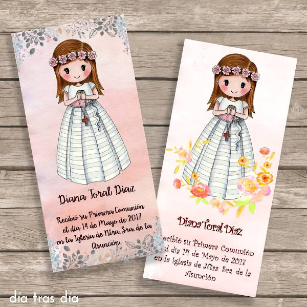 Tanto para niños como para niñas, hay varios modelos disponibles entre los que escoger y luego añadir los fondos, textos y tipos de letra que más os gusten. Son recordatorios a la carta ;-). Aquí os dejo una muestra de las distintas opciones disponibles: