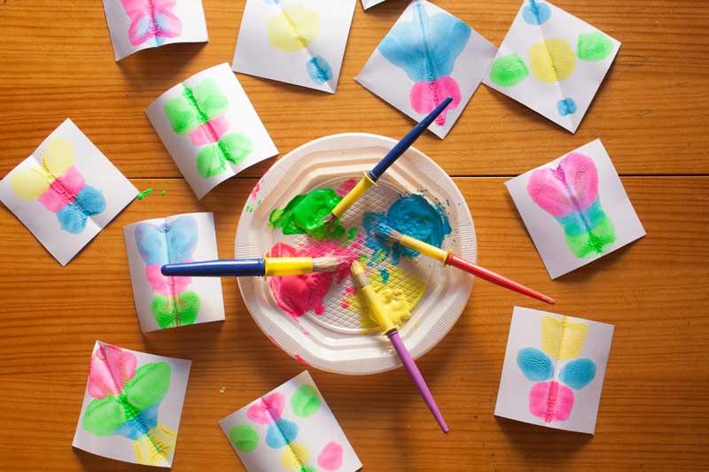 Ahora que está pintada la cartulina la tendréis que doblar por la mitad y presionar hacia las esquinas para así ir repartiendo la pintura que habíais puesto en la cartulina.