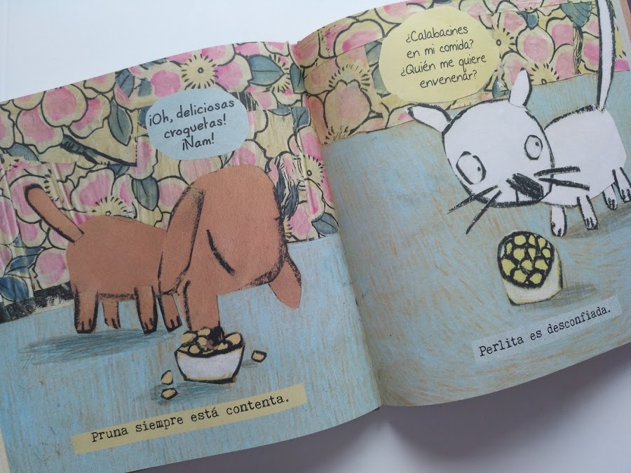 Pruna y Perlita es una tierna historia pensada para los pequeños lectores, que muestra lo diferentes que son dos mascotas (una perrita y una gatita) que viven juntas.