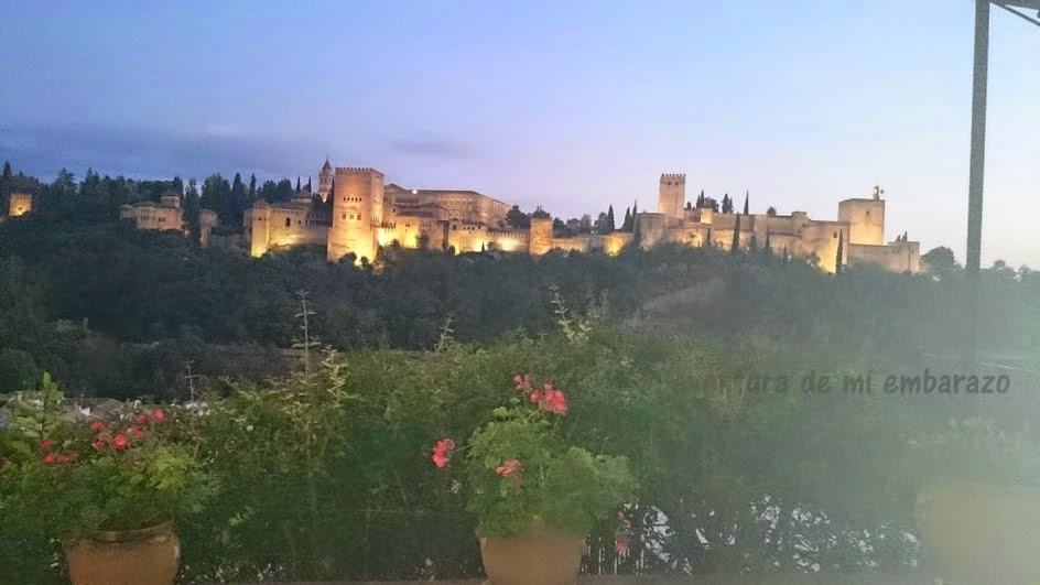 El cóctel fue en Las Tomasas, un precioso restaurante con unas vistas privilegiadas a La Alhambra. Si este monumento es maravilloso durante el día, obervarlo al anochecer es una delicia para la vista. Ya conocía semejantes vistas desde el Mirador de San Nicolás, a pleno día o en noche cerrada, pero nunca había visto el atardecer sobre La Alhambra. Espectacular.