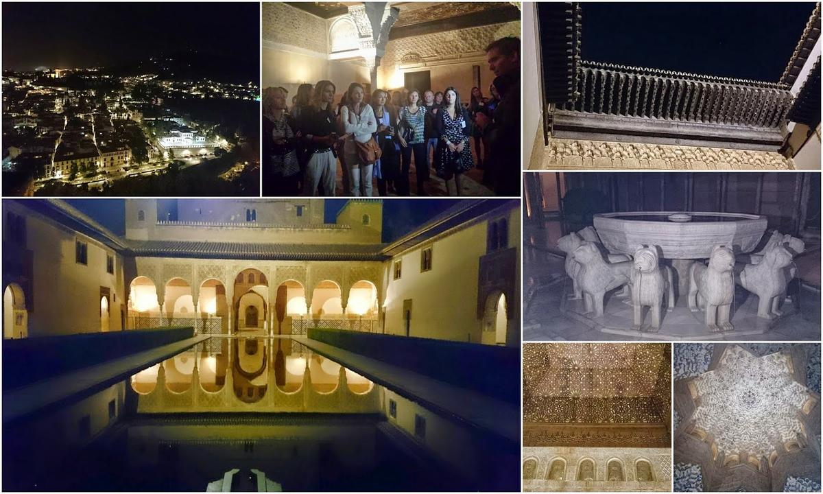 Luego nos trasladaron a La Alhambra para realizar una visita nocturna con guía. Creo que es algo que todo el mundo debería hacer una vez en la vida. Yo no conocía los Palacios Nazaríes, cuando estuvimos allí de visita con los niños me equivoqué al comprar la entrada y no incluía esta visita, además en esa época aún estaba en obras el Patio de los Leones y tenía esa espinita clavada. Y, sin duda, una visita con guía es muchísimo más profunda y didáctica. Y más si el guía te cuenta la historia como si fuera un cuento. Para mi será siempre "Federico, el contador de historias". Me hubiera quedado escuchándolo durante horas. Pero la visita fue más breve, aunque intensa, me dio lugar a hacer muchas fotografías, retener datos curiosos y aprender un poco más sobre nuestra historia.