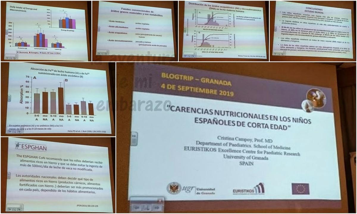 La segunda en intervenir fue la Dr. Campoy, cuya temática eran "Las carencias nutriticionales en los niños españoles de corta edad" y que nos ilustró con numerosos estudios y datos sobre la nutrición infantil, las necesidades nutritivas de los niños, la importancia para su correcto desarrollo y su déficit.