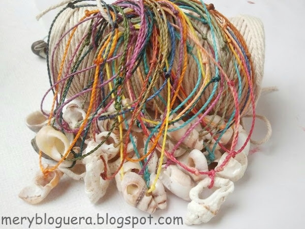 Nuestra Hada Madrina trajo un montón de hilos de colores encerados y... no pudimos resistirnos.