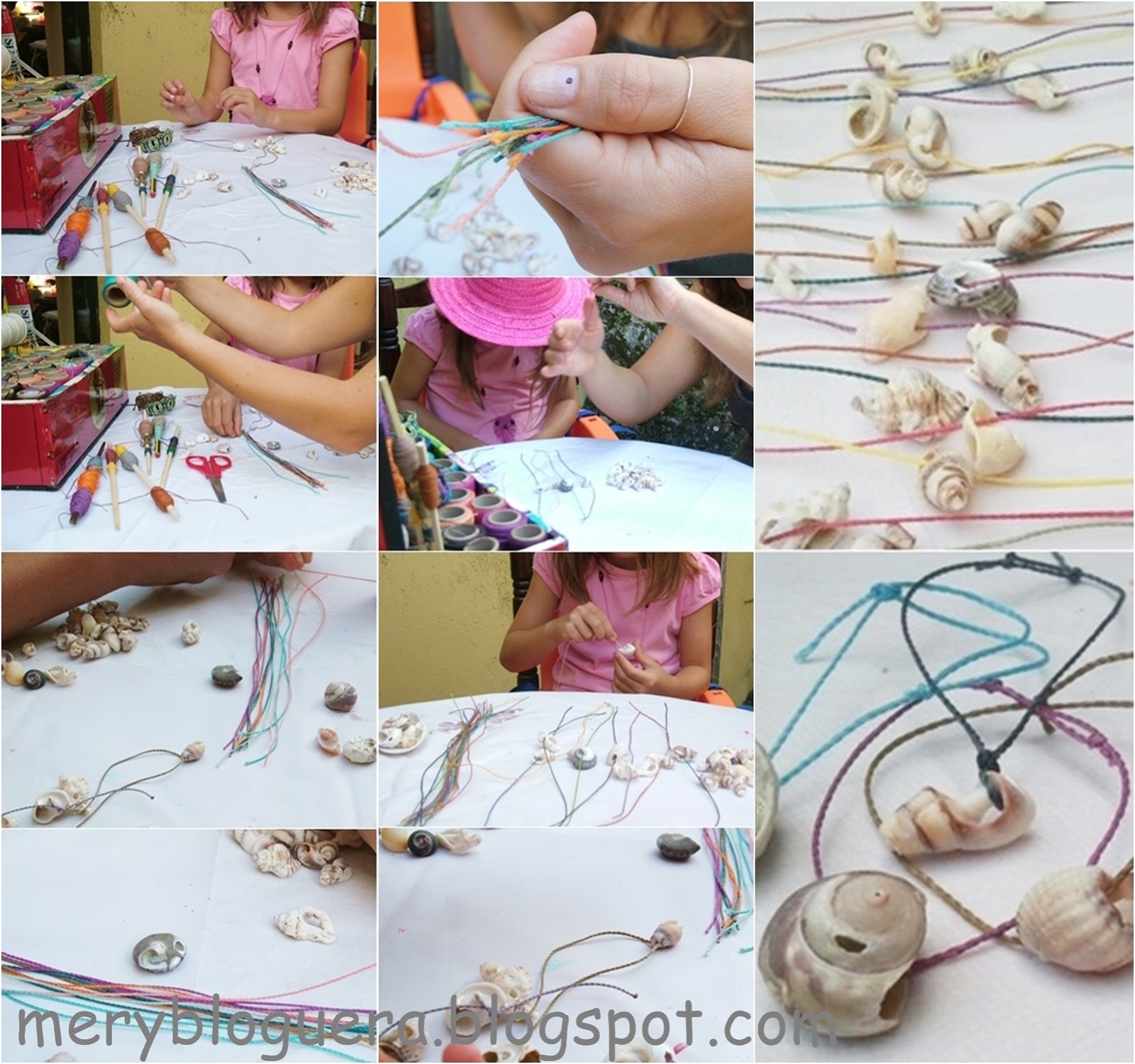 Nuestra Hada Madrina trajo un montón de hilos de colores encerados y... no pudimos resistirnos.