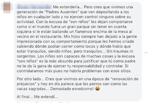 En definitiva y según la mayoría, se trata de educación, de empatía y respeto. Los niños necesitan su espacio para correr, jugar, divertirse, pero no tiene porque ser cualquier lugar y eso es lo que resume la mayoría de las aportaciones, pero ahora es mucho más sencillo, les damos un smartphone y ya no molestan a nadie, dirán algunos.