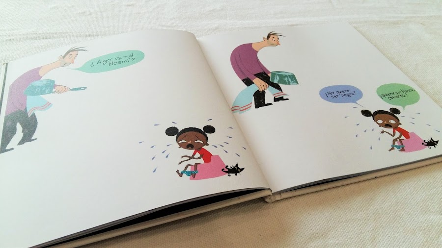 Así empieza esta bonita historia que pudimos leer gracias a Boolino Books. Cuando le cuentan la historia de la gatita Mina, Noemí se aceptará como es, estará muy feliz con su color de piel y comprenderá que todos somos iguales por encima de nuestros rasgos y color de piel.