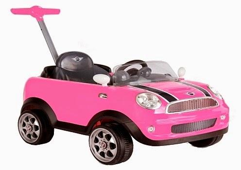 * Mini Cooper Rosa de Avigo: Este no se si realmente es un regalo para Pitusa o para su papi, porque es un coche muy pequeño que sino os digo yo que se subía en el. Eso si, cuando montamos a Pitusa teníais que ver que cara puso, venga a dar palmitas y tocar todos los botones. Lleva pilas porque se encienden las luces, suena el pito, etc. y asa ajustable en altura para empujarlo. La edad recomendada es entre 10 meses y 3 años.